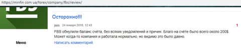 На изображении, расположенном ниже, вы можете прочесть комментарий еще одного обманутого аферистами ФБС клиента, который столкнулся с проблемой того, что шулера FBS попросту начинают списывать средства со счета клиента. При этом наивный пользователь их не выводил и не торговал ими, однако мошенникам ФБС это никак не мешает в разводе.