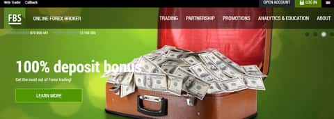 Начинается сайт у мошенников довольно стандартно, однако без мотивирующих цитаток. Вместо этого шулера FBS заполнили свой подвальный сайт множеством бонусных предложений, под предлогом которых аферисты ФБС будут пытаться развести клиента на депозит. На изображении, расположенном ниже, вы можете увидеть шапку сайта лохотрона FBS.