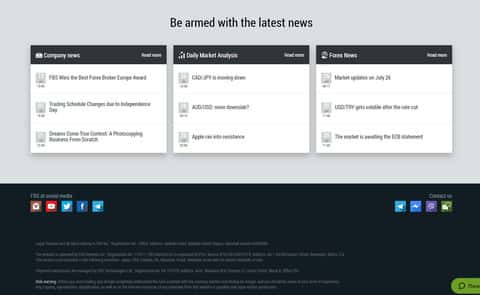 Завершается сайт у мошенников ФБС довольно стандартно, а именно ссылками на страницы жуликов FBS в социальных сетях, а так же блоком новостей от аферистов и информацией об оффшорной регистрации лохотрона ФБС. На изображении, расположенном ниже, вы можете наглядно увидеть окончание подвального сайта мошенников FBS.