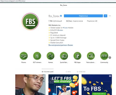 Имеется у аферистов FBS страница и в нынче популярной социальной сети Инстаграм, где жулики ФБС не поленились накрутить около тридцати тысячи подписчиков, о чем можно узнать с помощью отсутствия активности пользователей на записях шулеров. На изображении, расположенном ниже, вы можете увидеть страницу лохотрона FBS в социальной сети Instagram.