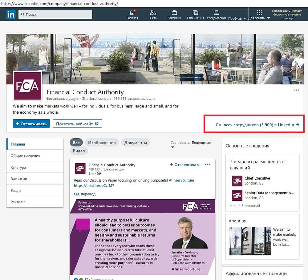 Конечно же не смогли обойти стороной мошенники FCA социальную сеть для бизнес-контактов linkedin com. Очень удобный способ искать как добычу, так и подельников. А вообще представленность всего в паре соцсетей для крупной организации численностью аж в 2900 человек, немного подозрительна.