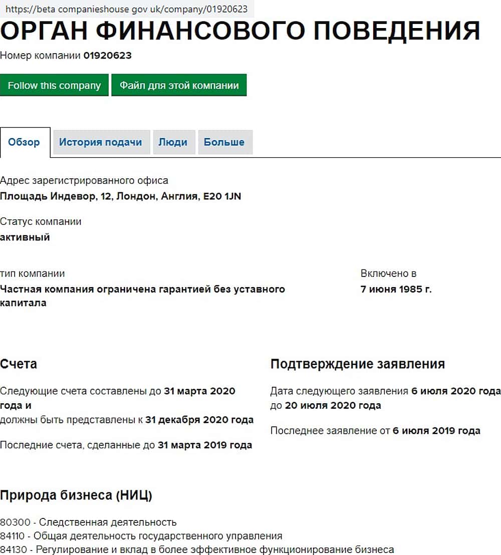 А вот реестр организаций Великобритании дал куда более развернутую информацию про мошенническую схему, которой на самом деле является шарашка Financial Conduct Authority. На самом деле данная регистрация абсолютно ничего не значит. Это не мешает жуликам Financial Conduct Authority покрывать брокеров-аферистов.