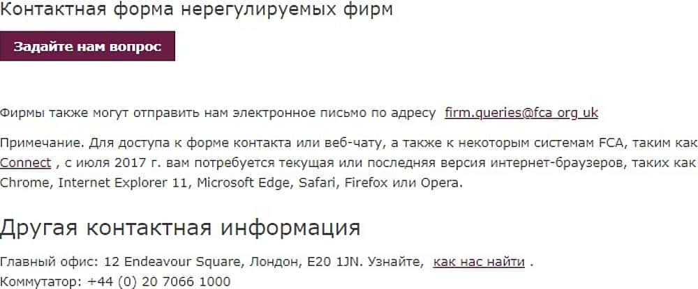 Контактов для связи у сомнительного предприятия FCA предостаточно. Плуты FCA могут ведь написать почту, которая никем не проверяется, или телефон, который стоит в дальнем углу пустого склада. В общем, в случае если захотите обратиться за помощью к этим жуликам, то это может оказаться пустой затеей. Контакты аферистов FCA: