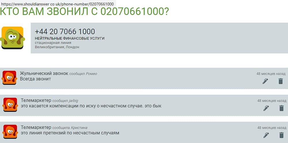 Еще один сервис по оценке заспамленности номеров shouldianswer co uk внес номер телефона шайки злоумышленников FCA в неблагонадежные. С данного номера поступают навязчивые звонки и пытаются продавать свои коллекторские услуги. Опять же, это не поступок серьезной службы, которой себя возомнила конторка FCA.