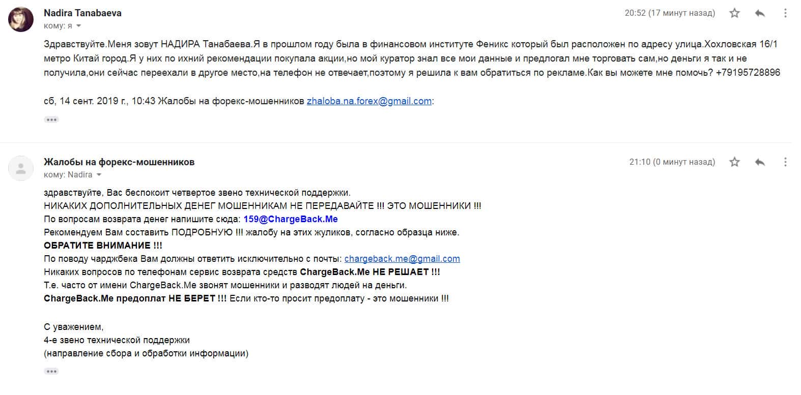 На емайл интернет-сервиса по сбору жалоб на онлайн-аферистов, включая форекс-брокеров, организации по доверительному управлению и разные откровенные мошеннические веб-площадки (хайпы), также пришла жалоба и на компанию Феникс, якобы предлагающую услуги обучения в сфере трейдинга и инвестирования, но на самом деле есть ни что иное как очередной лохотрон. Далее предлагаем ознакомится с письмом одной из пострадавших.