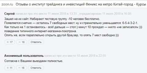 Вся будто бы образовательная деятельность конторы Феникс – пыль в глаза. Ни вузом, ни каким либо другим образовательным учреждением они не являются. Все эти приглашения на обучение – очередная манипуляция, чтобы найти клиентов на свой лохотрон. Этому свидетельствует то, что сотрудники Fenix Trading Club банально никого не учат. Все им лекции – для виду, и сводятся лишь к разводу на депозит. Если же вы все ровно не кинули в их лохотрон копеечку или больше – вы будете им попросту не интересны, что подтверждает саму суть происходящего. Контора Феникс заинтересована только в получении прибыли от своих клиентов, но никак не в их обучении.