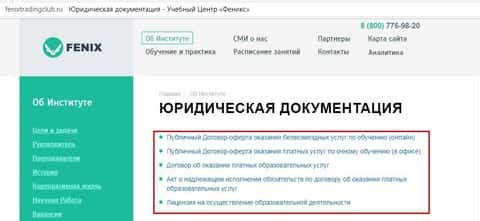 Мошенники Fenix Trading Club всячески прикрываются образовательной деятельностью