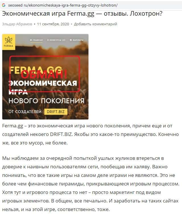 - Мнения о работе мошенников Ферма ГГ на разных ресурсах