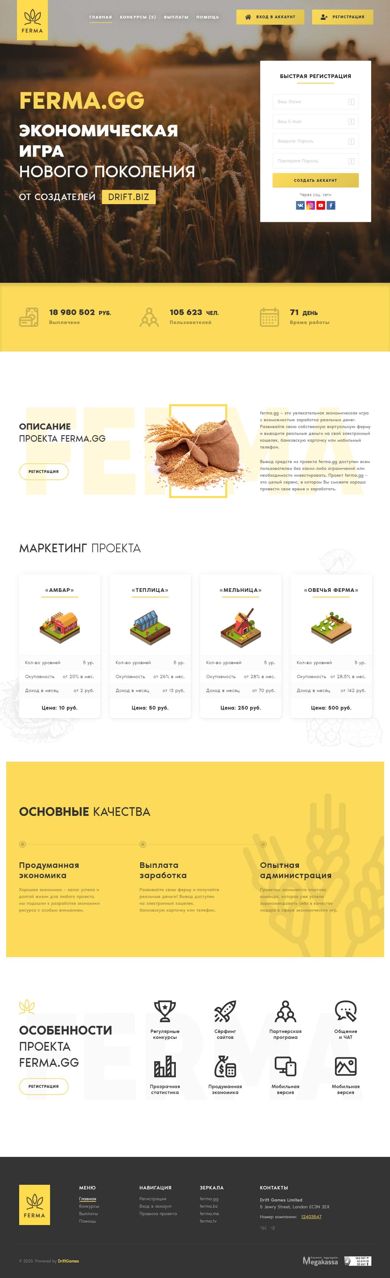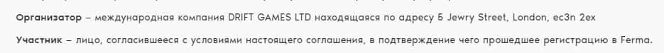 Официальным юридическим лицом, которое ведет с вами дела от имени жуликов Ферма ГГ является DRIFT GAMES LTD. Именно они работают от жуликов.