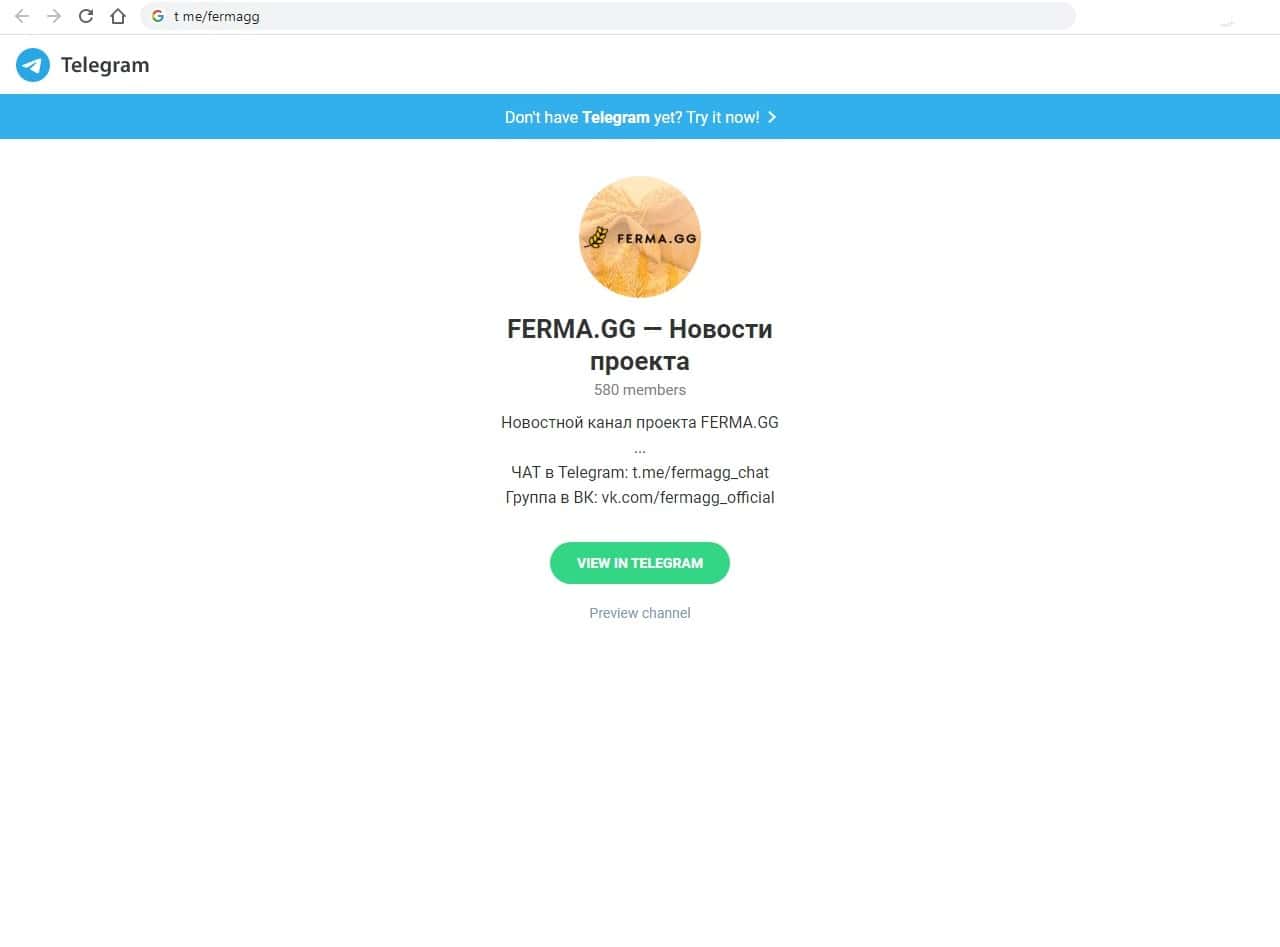 Второй способ связи с жуликами и мошенниками Ферма ГГ - это канал в телеграмме, куда вы можете попробовать им написать по адресу: