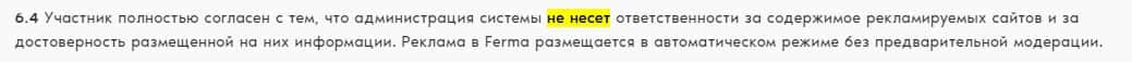 Также аферисты не несут ответственности за размещенные рекламные материалы. И если вы на них поведетесь и потеряете деньги - это тоже ваша ответственность.