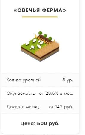 И последний тип счета, в который предлагают вложиться жулики Ферма ГГ - это "Овечья ферма". Здесь цена входа составляет 500 рублей под 28,5% в месяц.