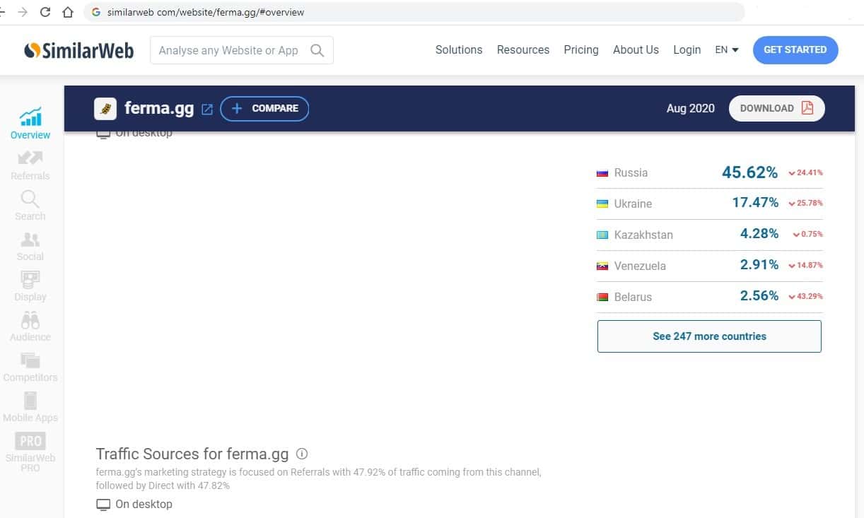 Сайт ferma gg настолько убогий, что по нему не показываются даже источники трафика. Это все, что нам нужно знать об этих жуликах.