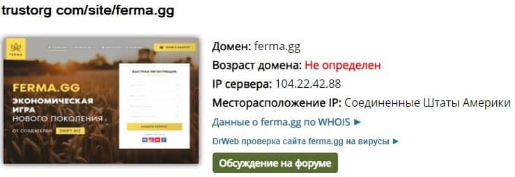 Возраст домена мошенников ferma gg не определен
