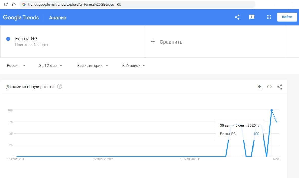 - Какое количество запросов по Ферма ГГ показывает Google?