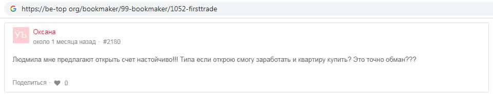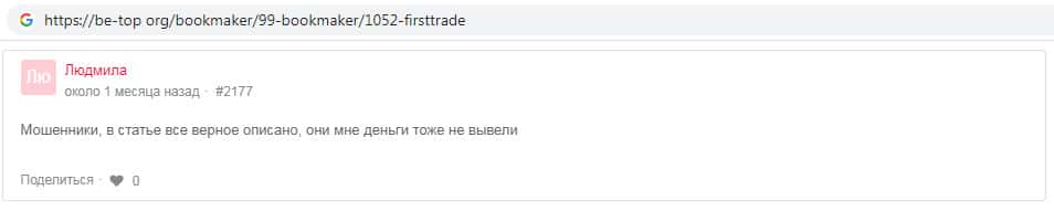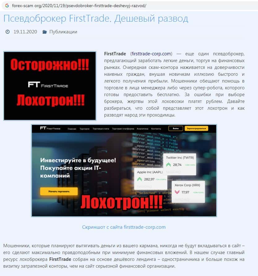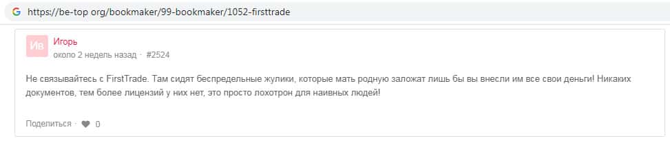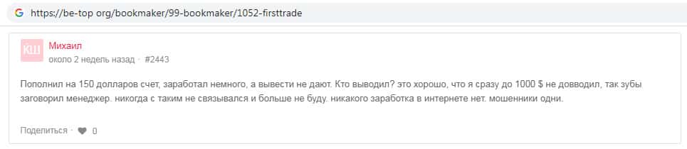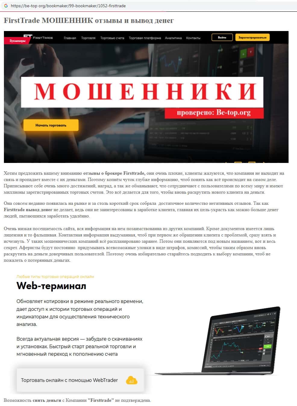 - Отзывы о фейковой конторе First Trade Corp, ныне присутствующие в сети-интернет