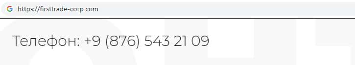 Также мошенники FirstTrade Corp указали контактный номер телефона для жителей Российской Федерации, а именно: