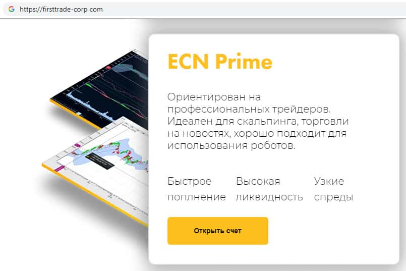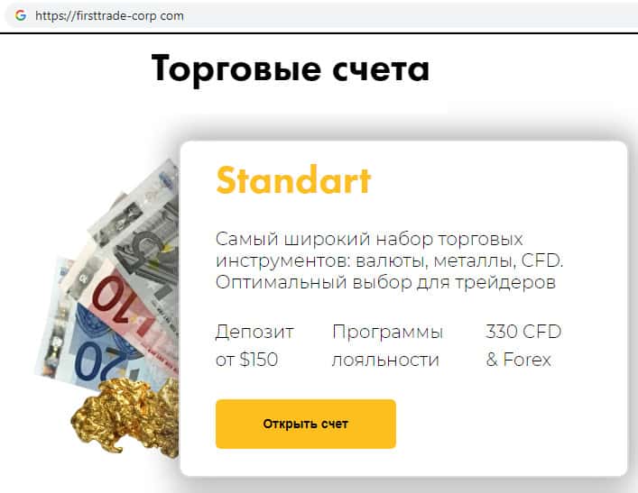 Торговые счета предлагаемые на сайте шараги FirstTrade Corp