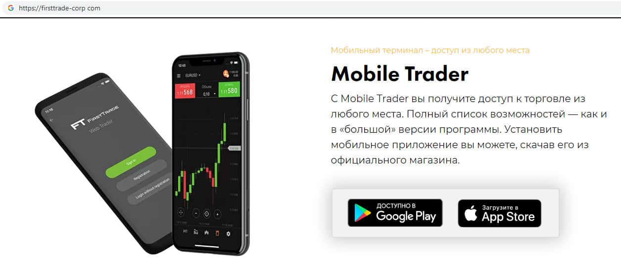 Также шулера Ферст Трейд Корп предлагают пользователям скачать на свой смартфон приложение с торговой платформой, где очень легко слить все свои деньги.