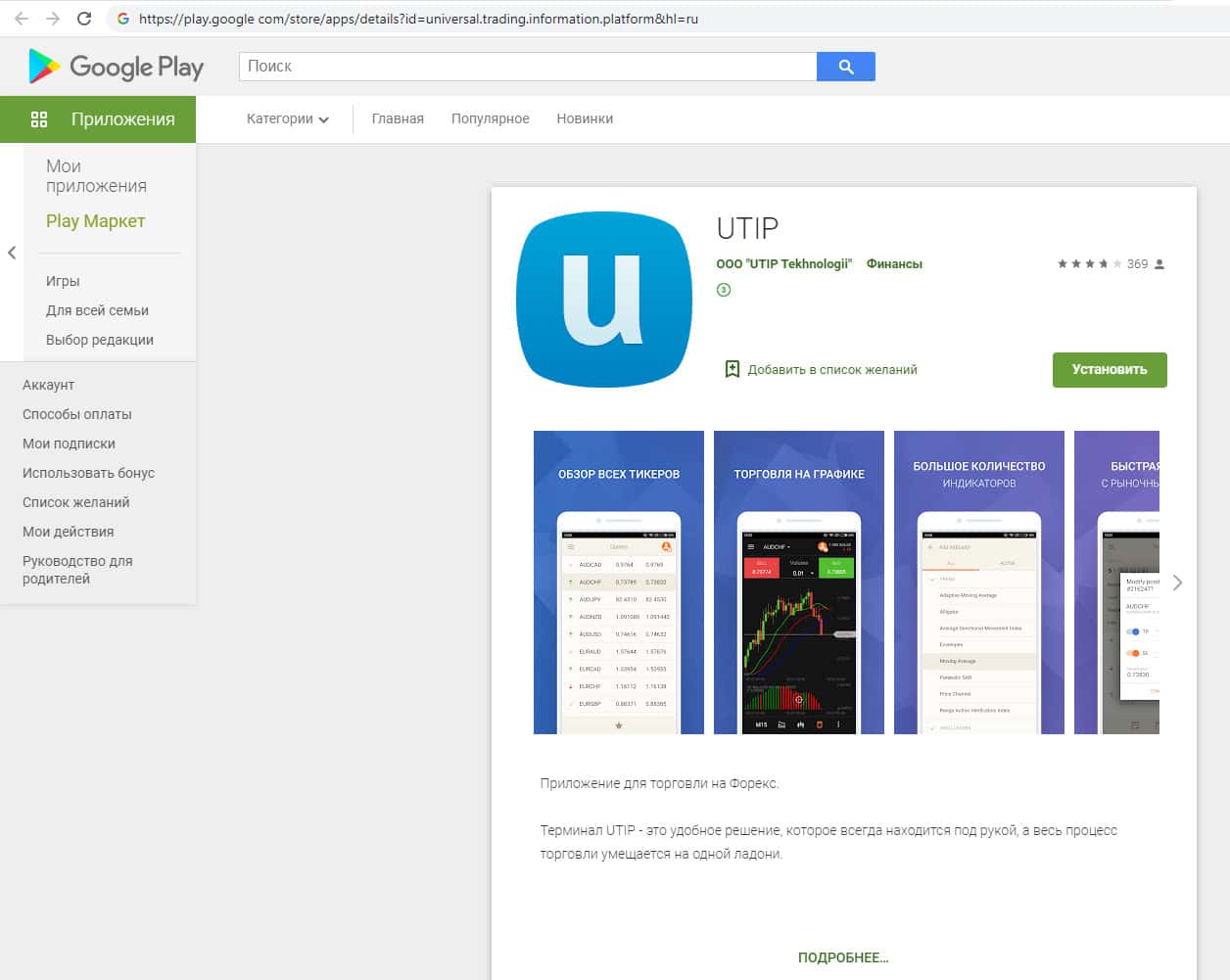 При нажатии кнопки для скачивания платформы FirstTrade Corp, открывается ссылка на мошенническую торговую платформу Ютип.