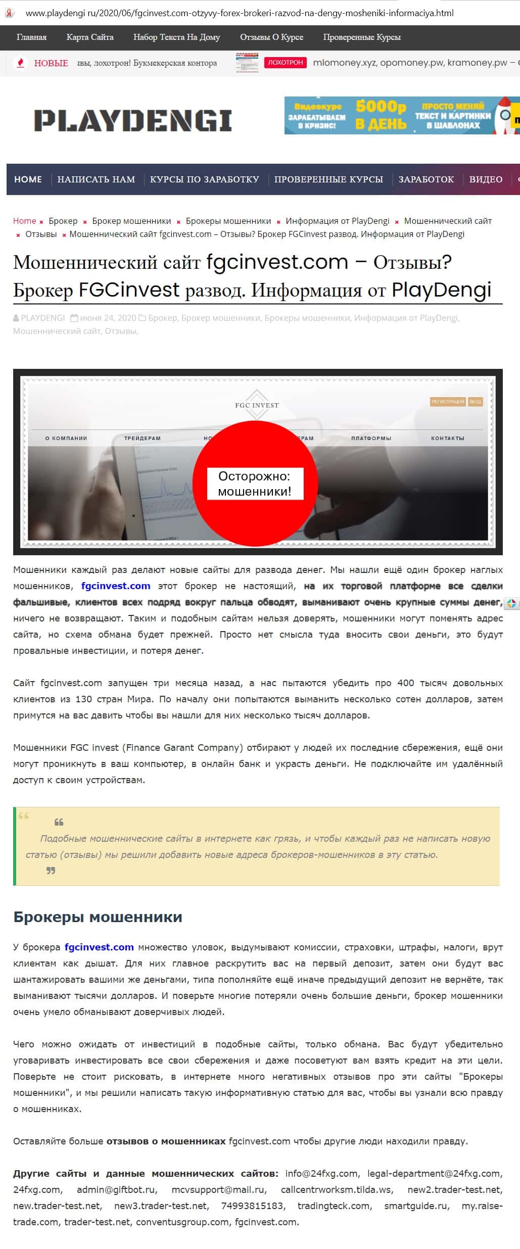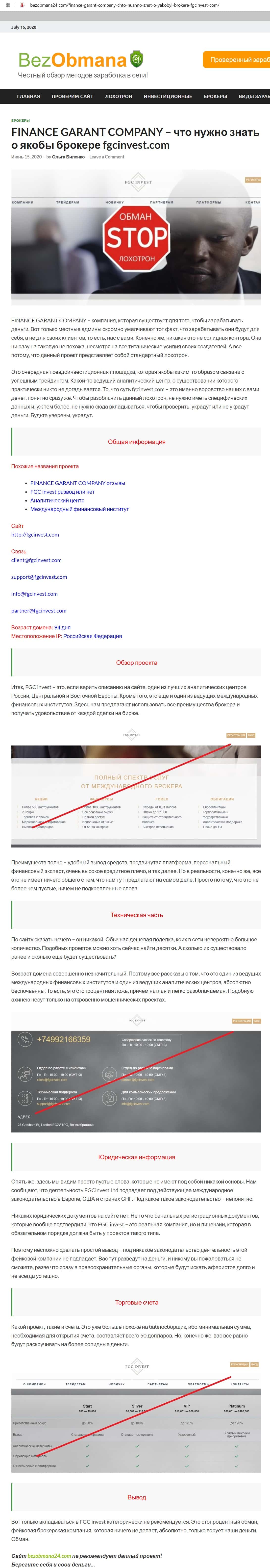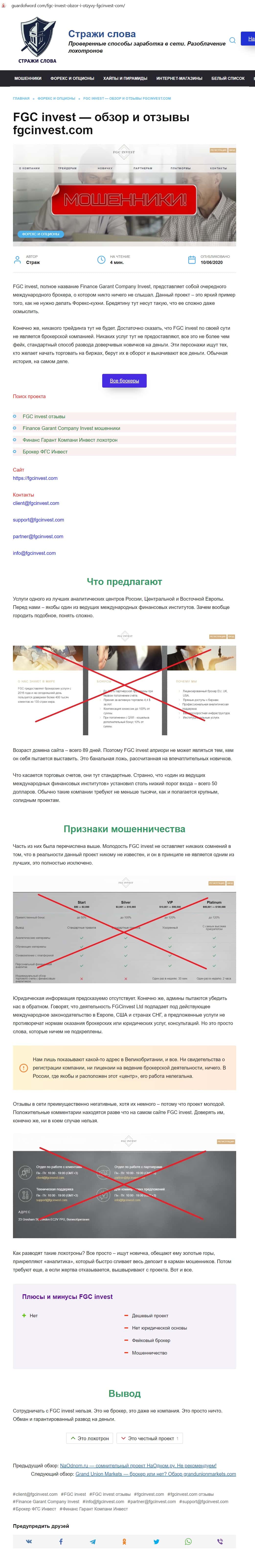 Ресурс bezobmana24 com выложил материал о мошенниках их ФГС Инвест. Он пишет, что данная шарага существует исключительно для того, чтобы выманивать с людей деньги.