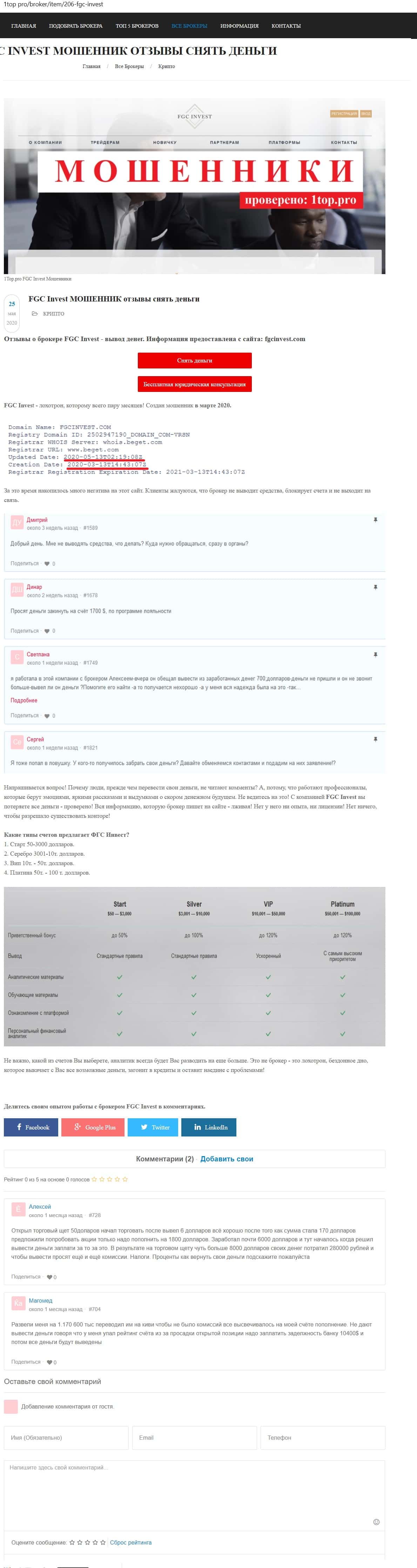 Обзоры о шулерской конторе ФГС Инвест, найденные в интернете