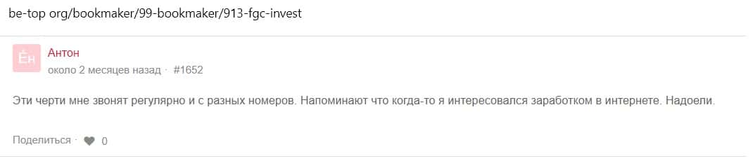 Антон говорит в своем отзыве, что ему регулярно звонят надоедливые сотрудники конторы ФГС Инвест и напоминают, что он интересовался заработками в интернете.