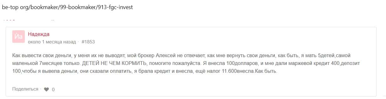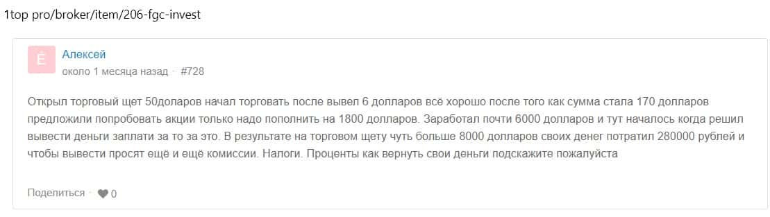 - Жалоба очередного пострадавшего клиента FGCInvest