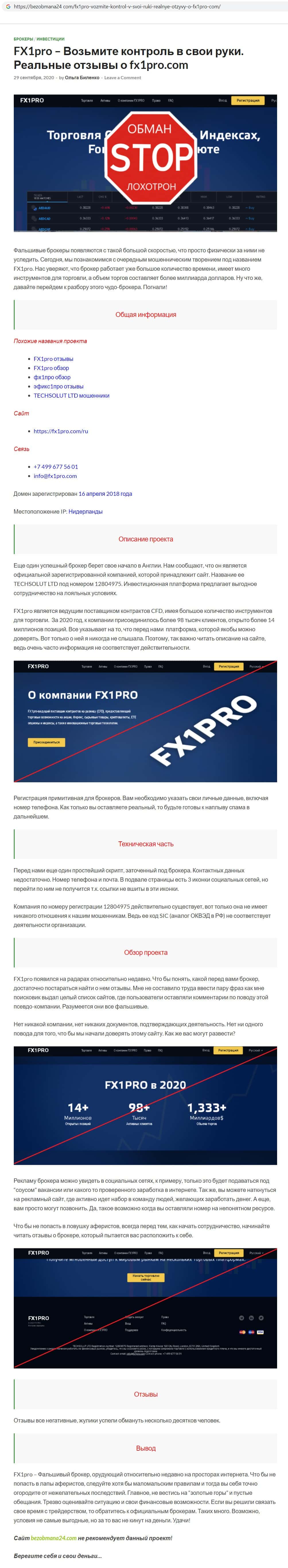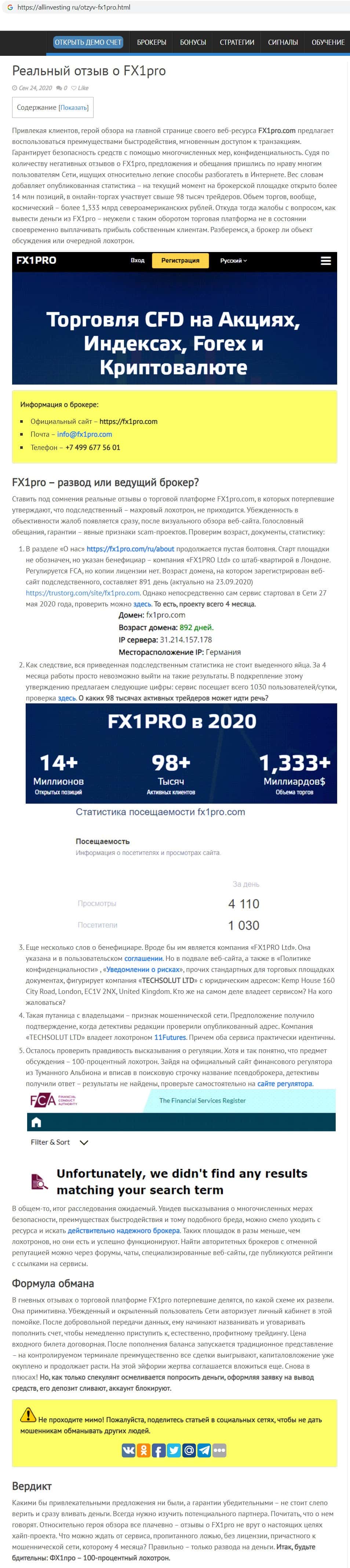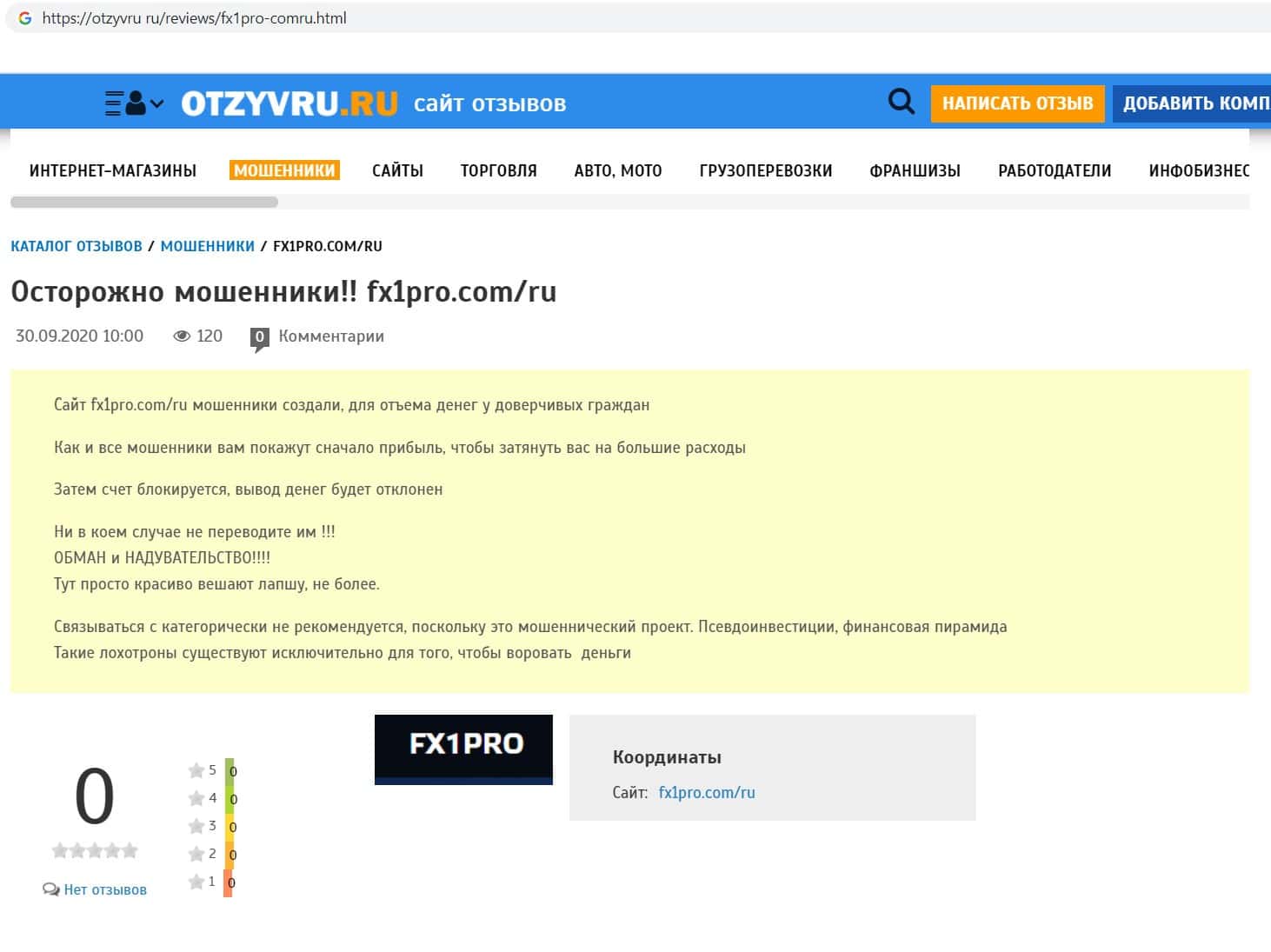 - Мнение интернет ресурсов о компании мошенников FX1Pro