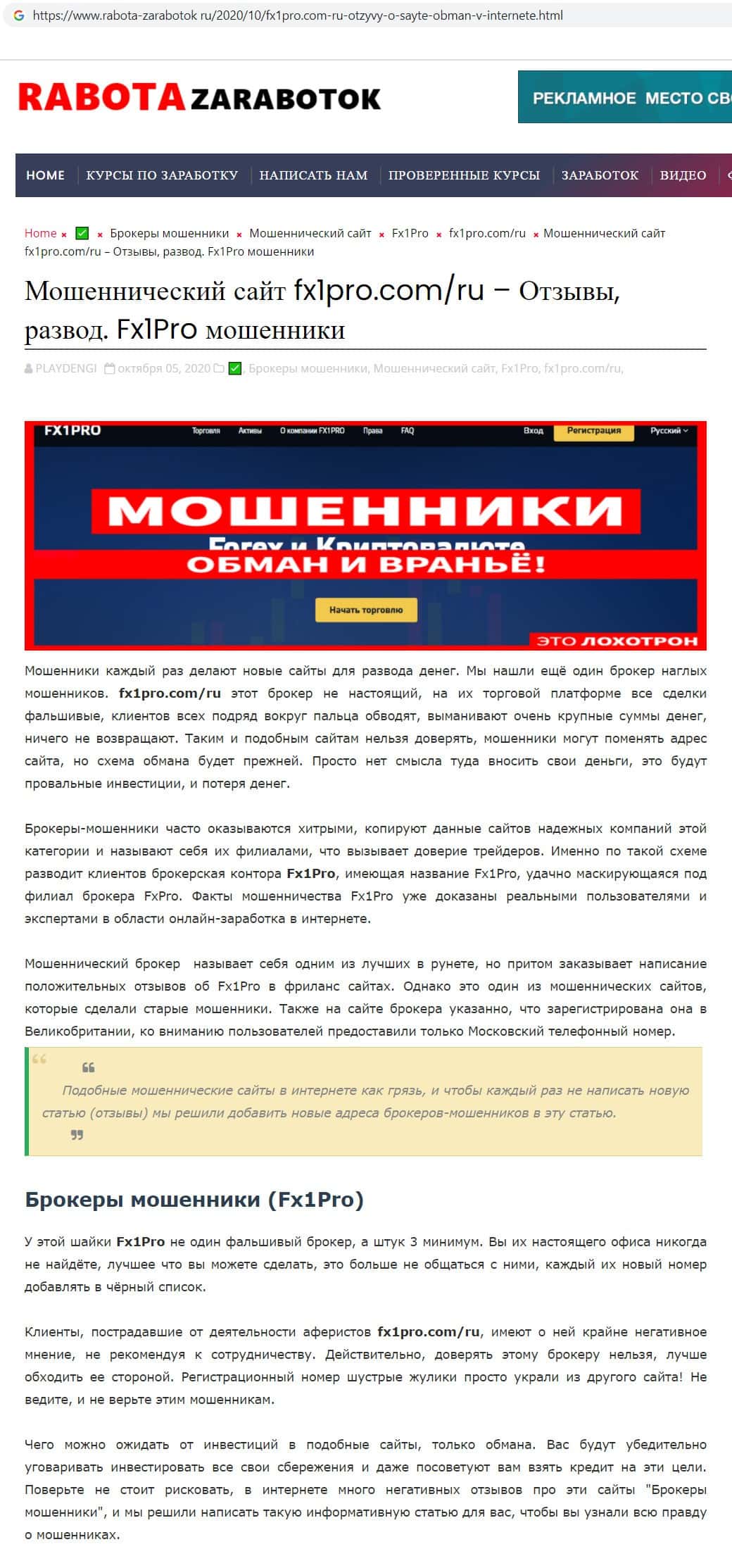 rabota-zarabotok ru - сайт с информацией о жуликах FX1Pro