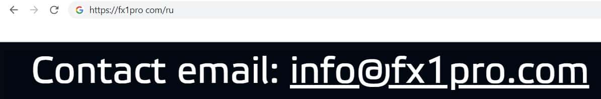 Так же фирма аферистов ФХ 1 Про указала свой контактный адрес электронной почты, который по сути бесполезен, так как компания просто напросто будет игнорировать письма клиентов. Почта аферистов: