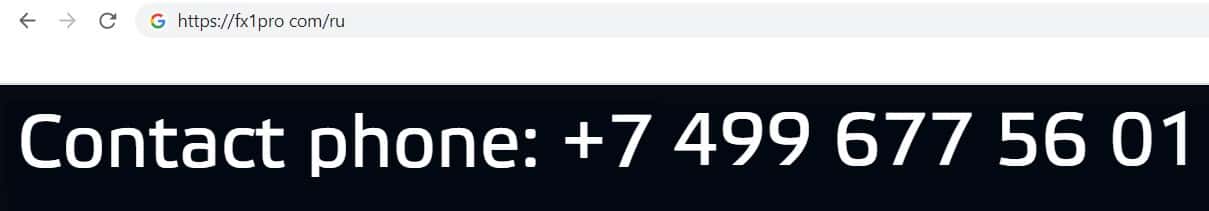 Компания мошенников FX1Pro указала контактный номер телефона, с которого звонит клиентам, но в отзывах о компании пользователи указали ещё телефоны. с которых звонили аналитики лохотрона. Номера мошенников: