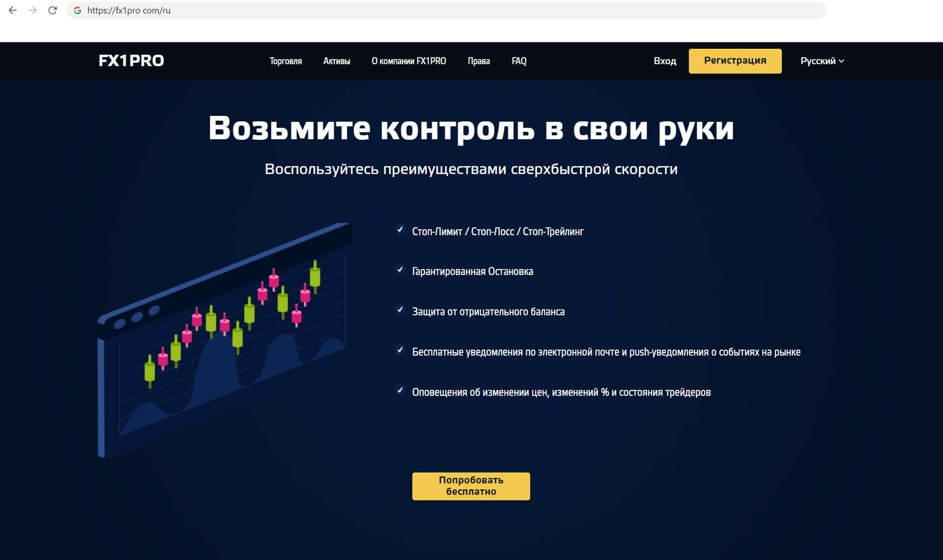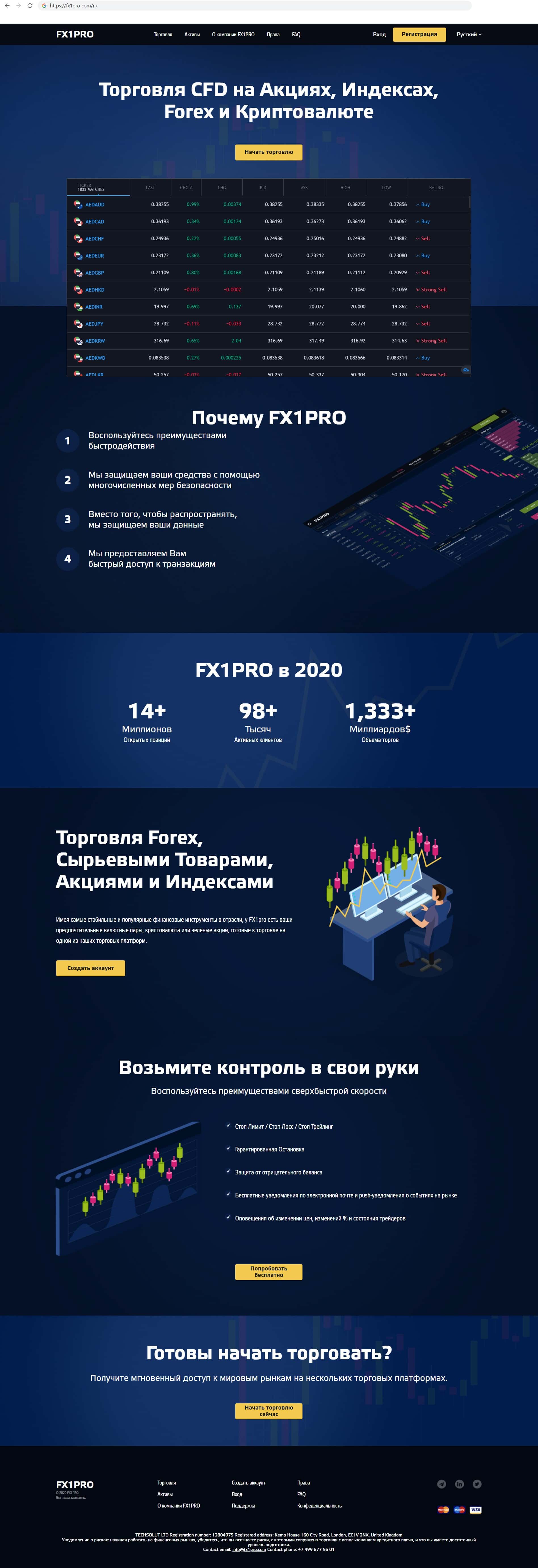 Внешний вид главного сайте компании лохотронщиков FX1Pro