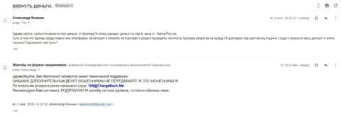 К нам пришла развернутая жалоба со всеми подробностями от человека, которого развела мошенническая организация FXBreeze. Жулики выманили у него сумму свыше 70 000 рублей и теперь отказываются возвращать. Для этого он последовал советам знакомых и отправил запрос на помощь в организацию ChargeBack.Me где знают как действовать в таких ситуациях для успешного окончания дела.