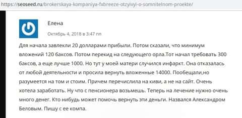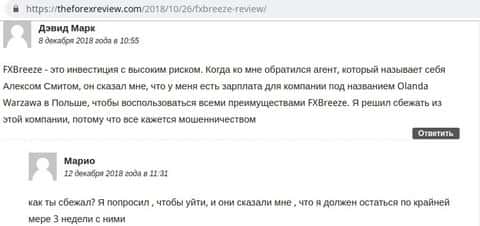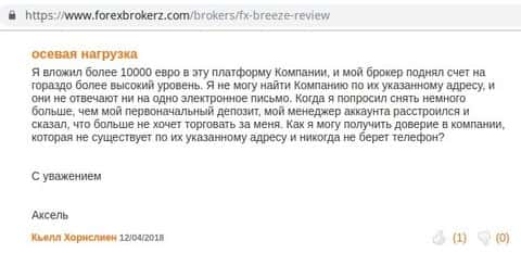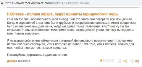 Ниже приведен перевод отзыва о махинациях FXBreeze на русский язык.