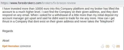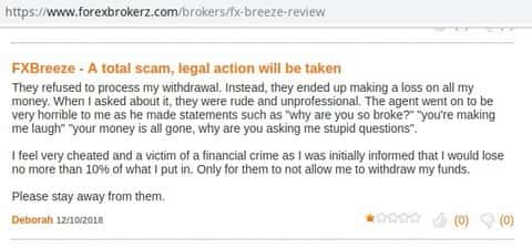 На том же сервисе (forexbrokerz com) видим ужасное отношение к клиентам со стороны FXBreeze и фразы типа: "почему ты такой бедный?", "вы заставляете меня смеяться", "твои деньги улетели, зачем ты задаешь мне глупые вопросы". Такое неуважение к клиентам со стороны ФХБриз приводит в шок!