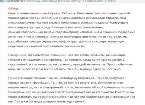 Статья из проверенного источника о мошеннических махинациях FXBreeze