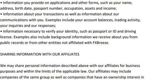 Ниже приведен перевод соглашения о сборе личной информации от FXBreeze.Владельцы и руководители жуликов FXBreeze