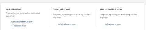 - поддержка по продажам - почта support@fxbreeze com - номер +442038084806;