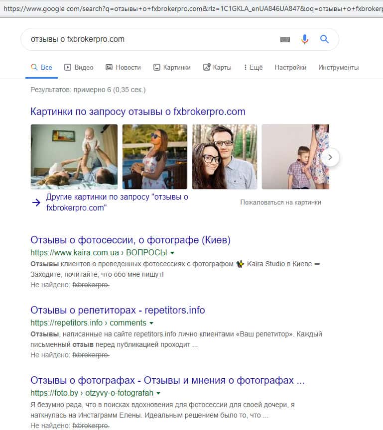 Полная тишина и безмолвие об афере ФХ Брокер Про в сети интернет
