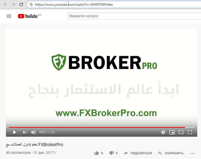 Так же остался незамеченным, размещенный на YouTube видеоролик, рекламирующий брокерскую контору ФхБрокер для арабской аудитории. Ролик размещен еще 31 декабря 2017 года, и за все время был просмотрен всего сорок девять раз. Отсутствие желаемой популярности, скорее всего, и определило его судьбу, и его забыли удалить.