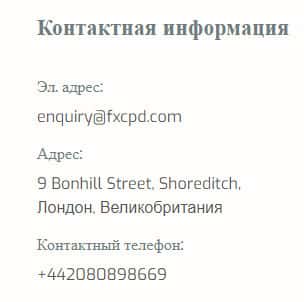 - Контактная информация для связи с обманщиками из аферной конторы FXCPD Com