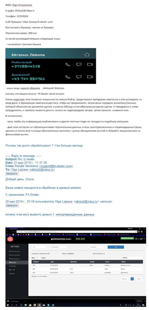 FX-DEALER кинули женщину на 8 300 евро - НЕ ВЫВОДЯТ ДЕНЬГИ !!!