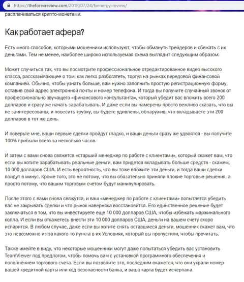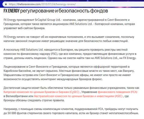 Сайт theforexreview com так же посвятил аферистам ФХ Энерджи Трейд стать. Основным разделом статьи ресурса зефорексревью ком было указано на факт отсутствия у шулеров FX EnergyTrade, и их смежных компаний, какого либо регулирования или же лицензии. Так же автором была описана одна из практикующихся рабочих схем по выманиванию денег из наивных клиентов, которая у жуликов ФХ Энерджи Трейд является наиболее популярной. Статью об аферистах FX EnergyTrade с ресурса theforexreview com вы можете увидеть на изображении ниже.