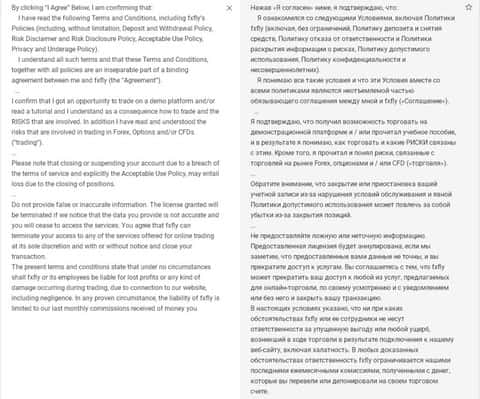 На сайте лохотронщиков ФХ Флай есть даже клиентское соглашение, правда, почему-то только на английском языке. В тексте черным по белому написано, что жулики ФХ Флай оставляют за собой право блокировать счета, поводом может быть подозрение в "неточности" предоставленных клиентом личных данных.