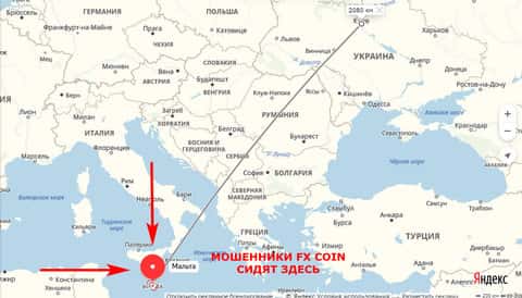 Настоящее расположение проходимцев из ФХ Коин - офшорная зона, а именно - остров Мальта, в 2080 км от Украины. Интернет-аферисты часто регистрируют свои мошеннические конторы именно на офшорах, ведь это помогает избежать им всяческой ответственности перед клиентами из других стран.