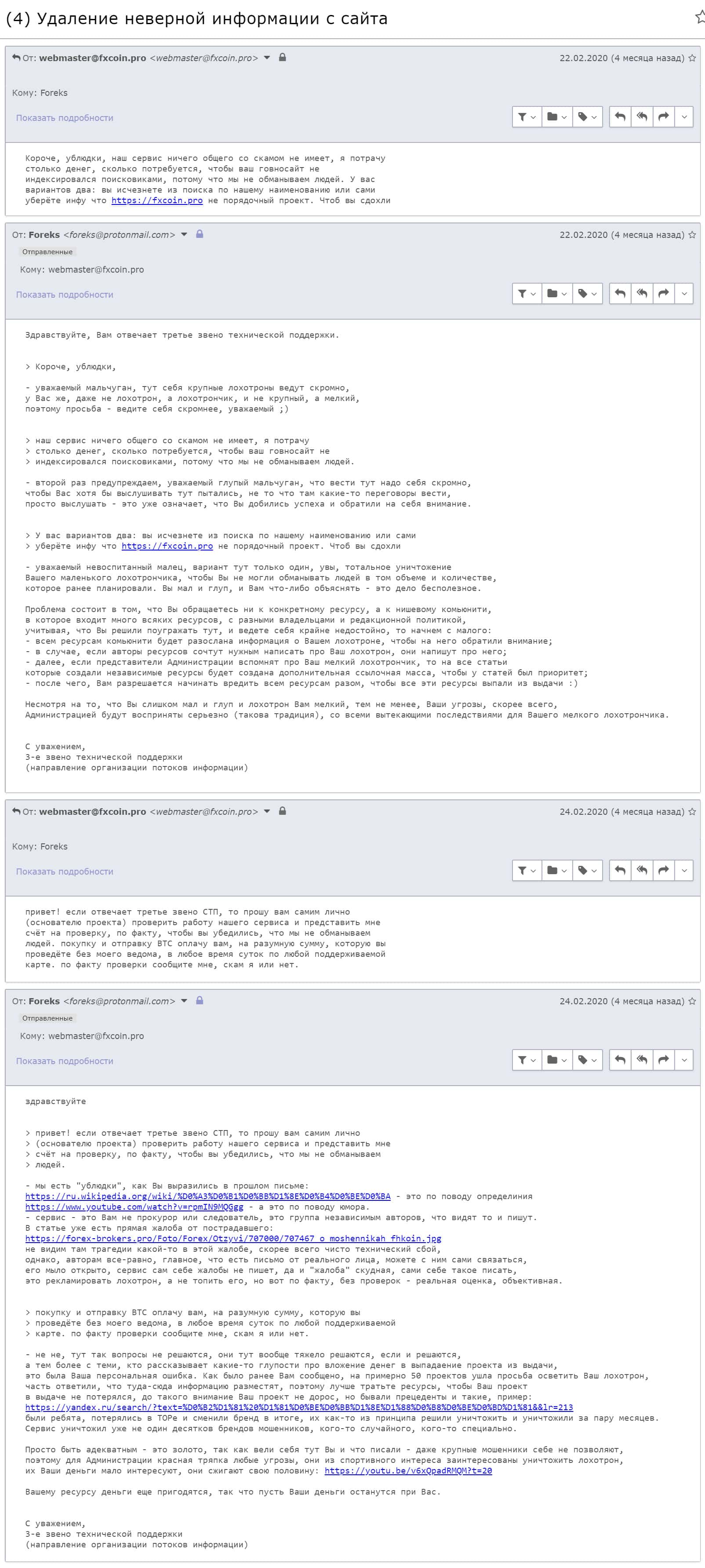 Минуло чуть больше 2 месяцев, и лохотронщики из ФХКоин вновь объявились, но уже с угрозами