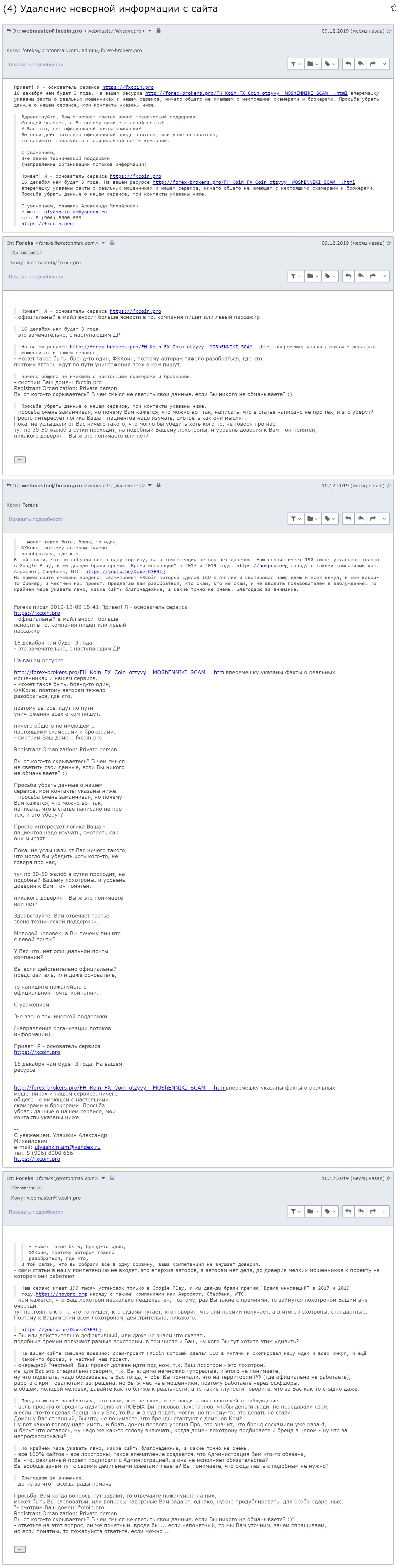 Мелкие лохотронщики из ФХКоин не перестают удивлять своей вероломной тупостью и головотяпством, на этот раз, мошенники пишут с официальной почты [email protected] и угрожают, что выкинут из поисковой выдачи данную страницу и сайт в целом. Ну что тут можно сказать: "безумству храбрых поем мы песни" - флаг в руки, барабан на шею.