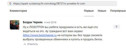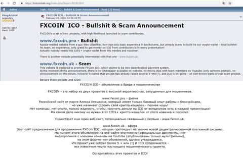 О том, что ФХ Коин это мошенники с жульническим проектом по биткоин-кошельку, узнаем из объявления на форуме bitcointalk org. Опытный трейдер сразу разобрался, что кроме жадности и желания выкачать бабло из российского пользователя, у основателей этого лаже-прожекта больше ничего нет.