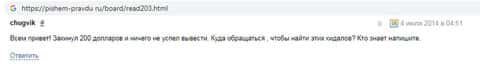 Еще один облапошенный пользователь попал на 200 баксов благодаря ФХ Коин